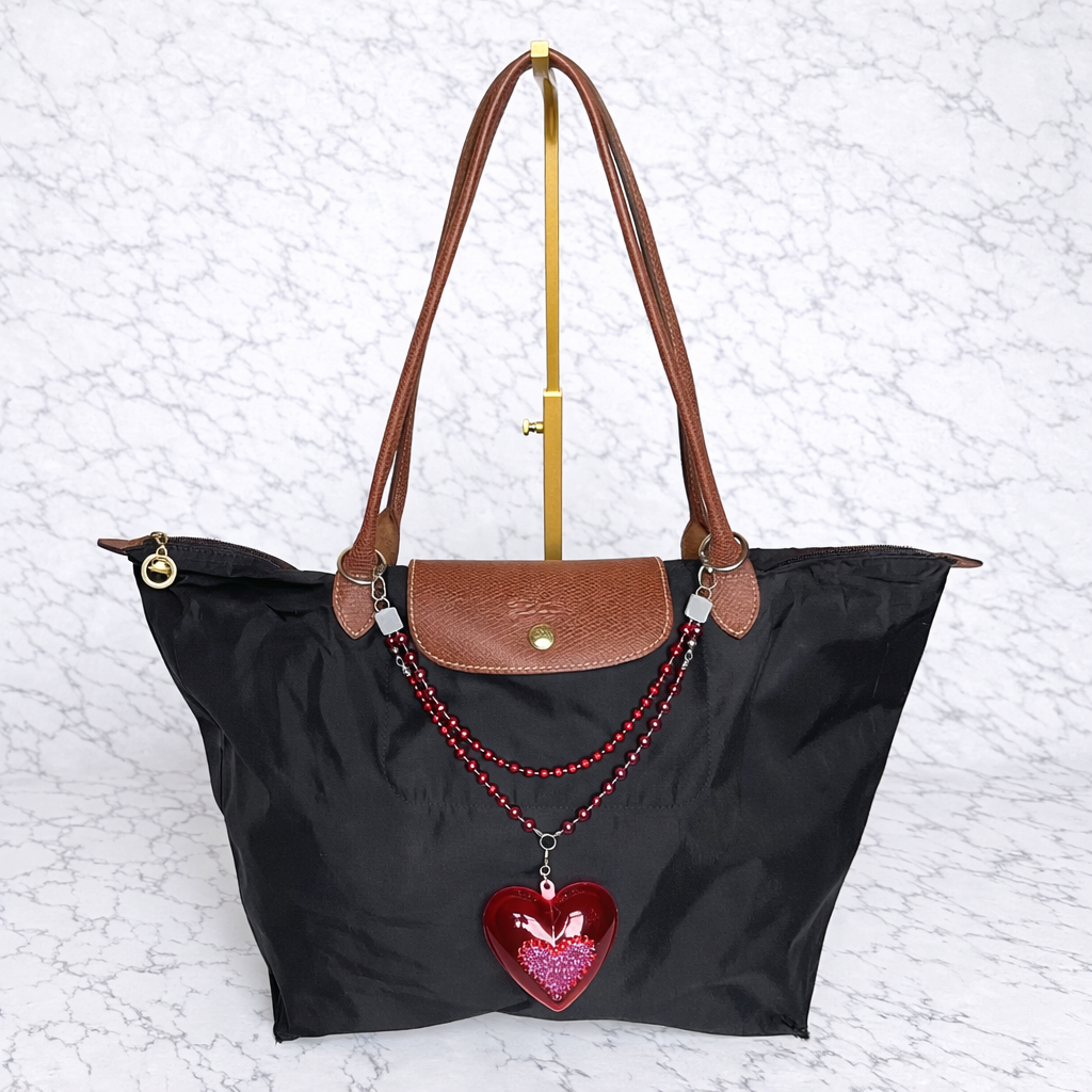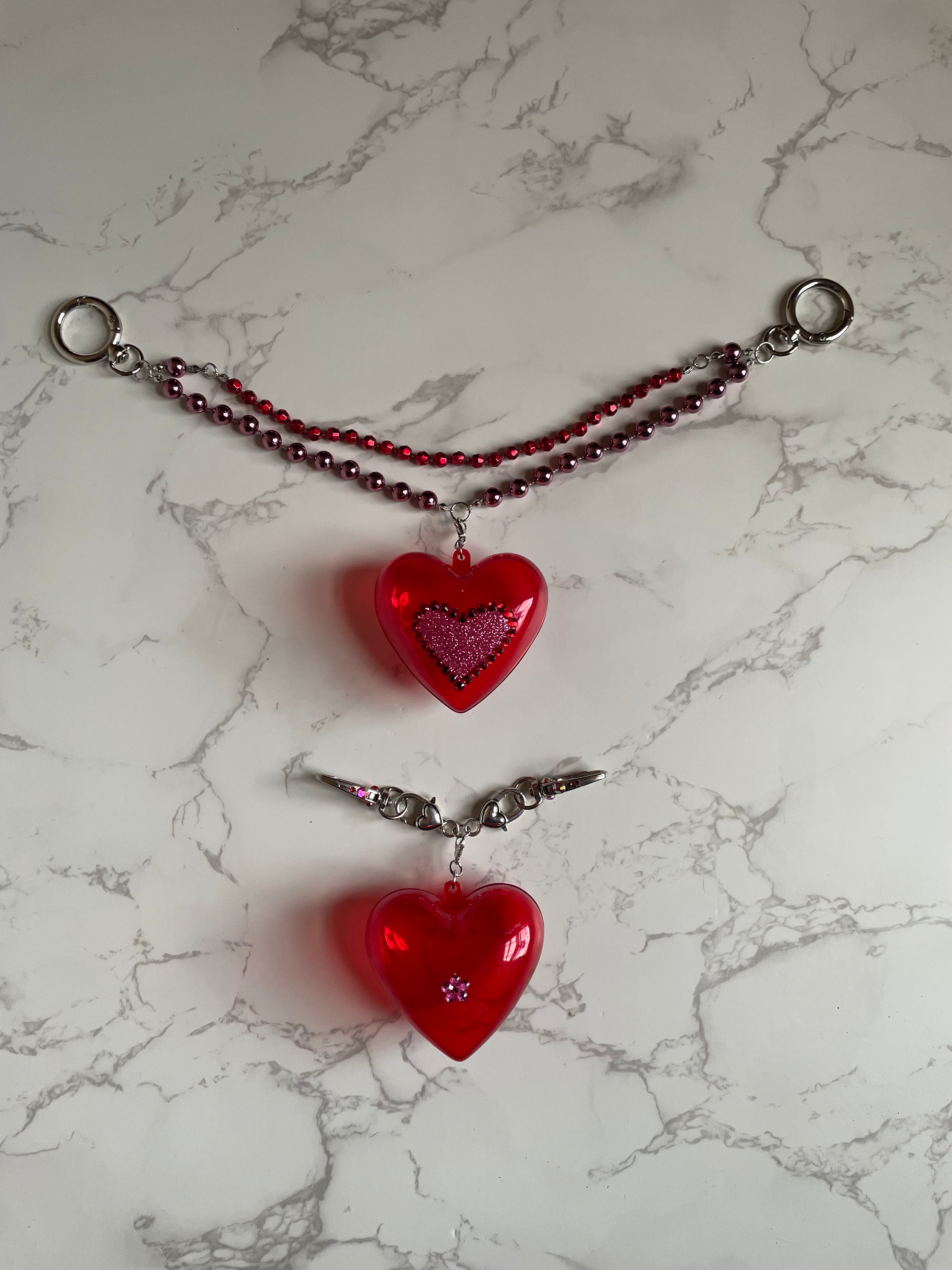 The Lover’s System includes two interchangeable heart charms — a glitter-core statement and a minimalist solid center — along with dual connector hardware and an additional holding clasp for seamless storage and reconfiguration.